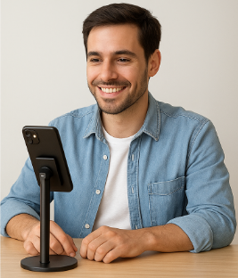Olvídate de sostener tu celular: con el Soporte Regulable, siempre a la altura y ángulo perfectos.